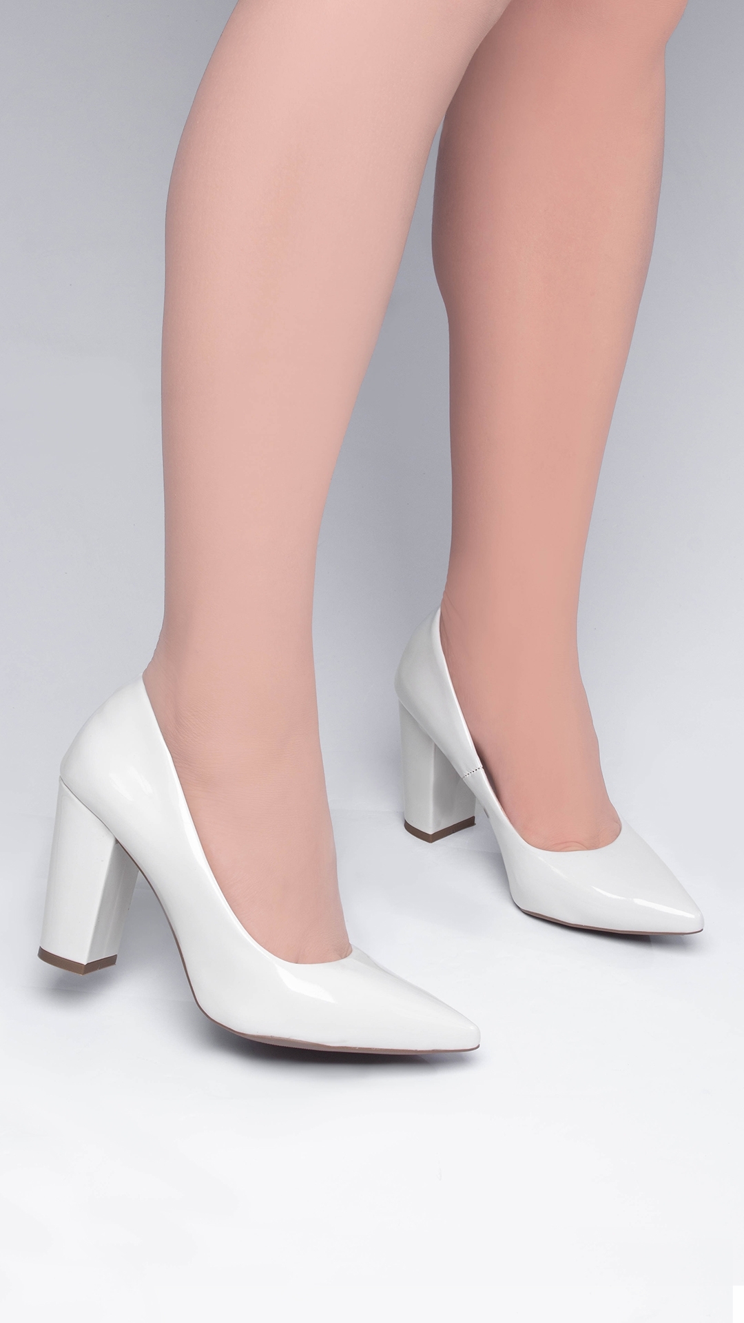 Salto: 8,5 cm de Altura encapado em Verniz Off White;