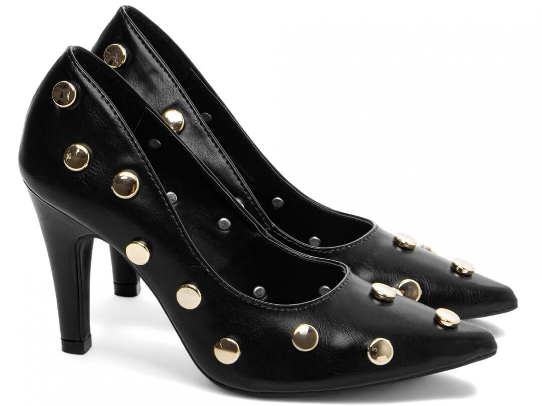 Invista no Sapato Scarpin Salto Fino Médio Preto com Aplique Dourado e eleve seu estilo a um novo patamar. Combinando conforto, qualidade e um design irresistível, este scarpin é a escolha ideal para a mulher moderna.